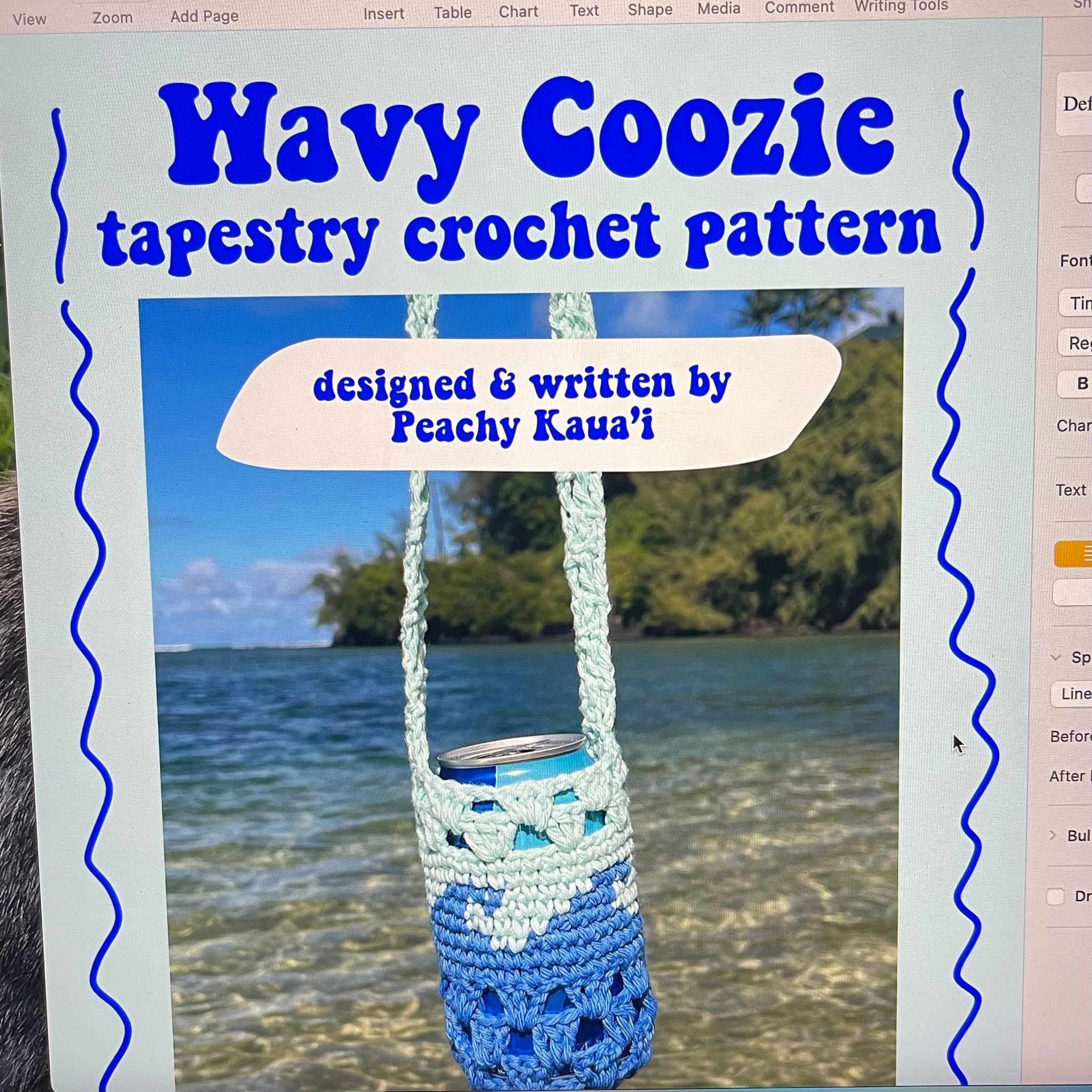 Wavy Coozie Crochet Pattern - Ocean Waves, Tapestry Crochet, Cute Can Cover